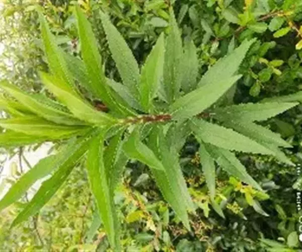 叶片:叶片披针形或线状披针形,互生,顶渐尖,基部楔形,近无柄。大多呈三出脉,边缘具锯齿。