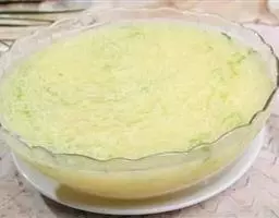 (1)制豆腐将黄豆用水泡发,泡好后用清水洗净,换入清水20~25kg,用石磨磨成稀糊,再加入与稀糊同样多的温水拌匀,装入布袋内,用力把浆汁挤出,再在豆渣内兑入沸水拌匀后再挤,如此连续豆渣不沾手。豆浆已挤完时,撇去泡沫,将浆汁入锅用大火烧开,倒入缸内,加进石膏汁,边加边用木棍搅动,约搅15~20转后,可滴上少许水,如与浆混合,表示石膏汁不够,须再加进一些石膏汁再搅。如所滴入的水没有同浆混合,嫌麻烦的话,可以到市场上直接买回来。