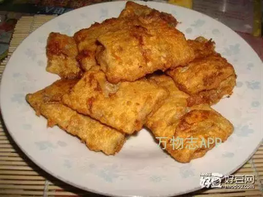 菜豆腐 长沙人称臭干子,特点:焦脆而不糊、细嫩而不腻、初闻臭气扑鼻,细嗅浓香诱人,具有白豆腐的新鲜爽口,油炸豆腐的芳香松脆。