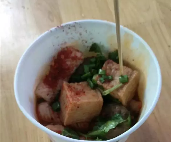 注:台湾臭豆腐还有采用秘制的韭菜+臭豆腐一起吃的