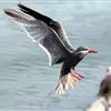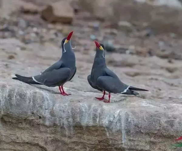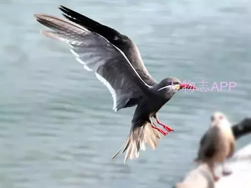 印加燕鸥体色深灰,体长 40 厘米左右,白色的卷曲触须突出在外。