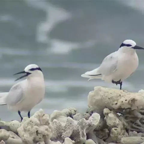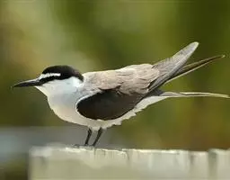 褐翅燕鸥:中型水鸟,体长360-370毫米。与乌燕鸥相似,体型稍小。额白,连接白色眉纹,…