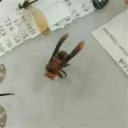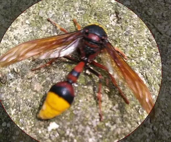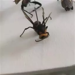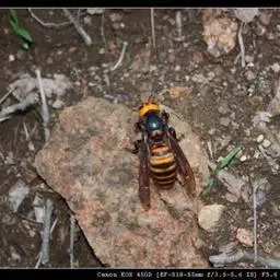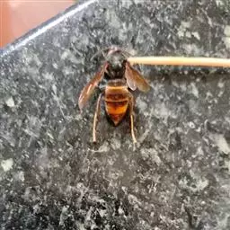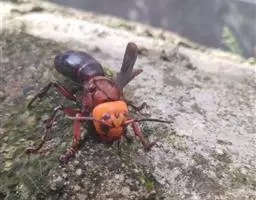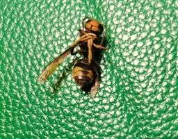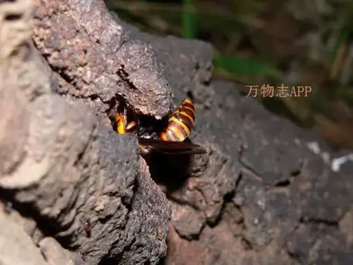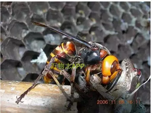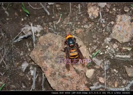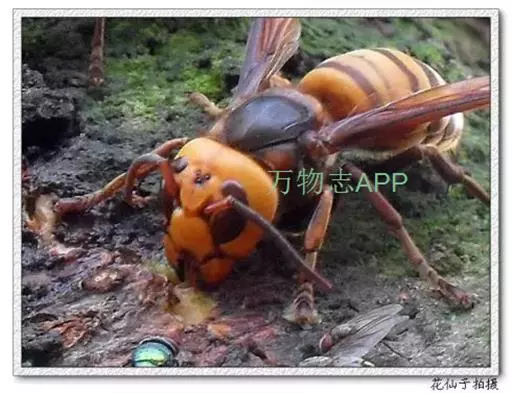 为膜翅目,胡蜂科。体长竟达40毫米,是世界上最大的胡蜂。头部:宽较胸部窄,但略宽于前胸背板前缘;胸部:前胸背板前缘中央略隆起,被中胸背板端部分开,肩角明显,前缘两侧黄棕色,其余均呈黑褐色,但有的个体肩角处各有1棕色斑,刻点几无,但布有棕色毛。腹部:除第6节背、腹板全呈橙黄色外,其余各节背板均为棕黄色与黑褐色相间。捕食多种昆虫,在生物防治上有较大利用价值,同时亦会吸食成熟水果,带来一定害处。属东洋、古北区系共有种。