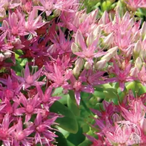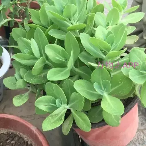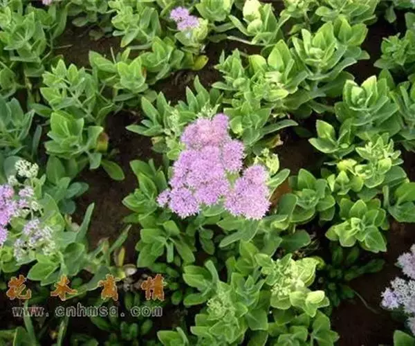是八宝属多年生肉质草本;常为倒卵形对生至轮生叶子;夏秋开淡红色花,花极茂盛成顶生伞房状聚伞花序,一部分雄蕊远较花瓣长。