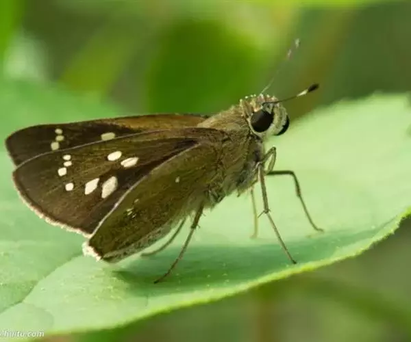 姜弄蝶 Udaspes folus ,又叫银斑姜蝶。幼虫吐丝粘叶成苞,隐藏其中取食,…