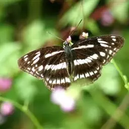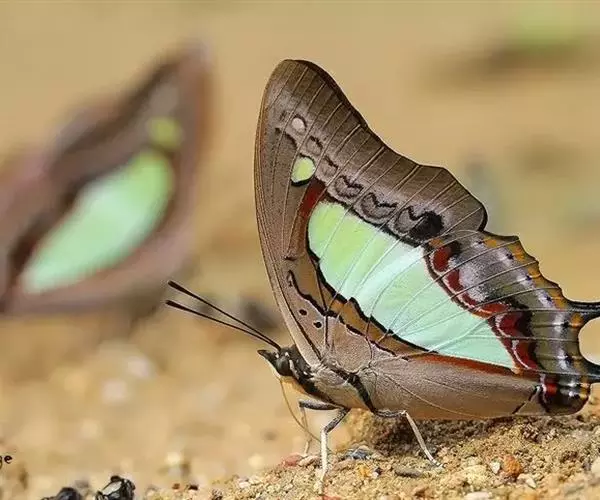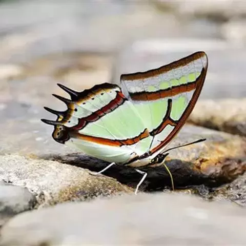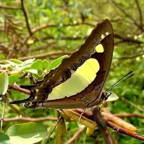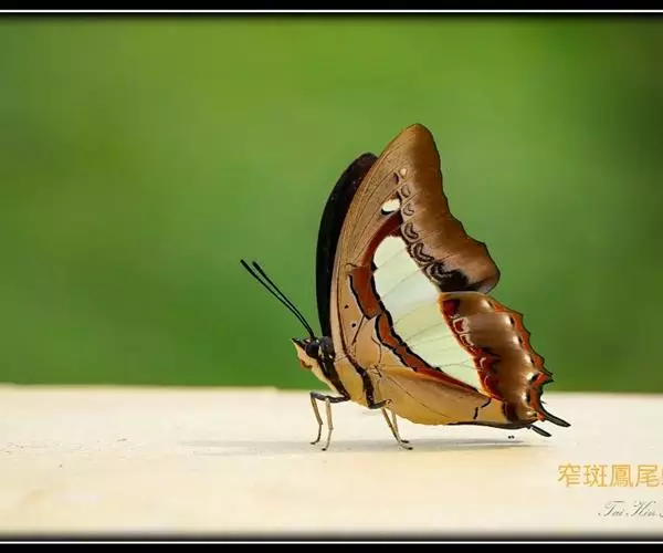 窄斑凤尾蛱蝶,Polyura athamas (Drury) ,别名凤蛱蝶,蛱蝶科,尾蛱蝶属中型蝶类,雄蝶翅展65-70mm,雌蝶翅展70-75mm雌雄同型,翅中部浅绿色,外侧有褐色宽边,后翅外缘有小尾突。
