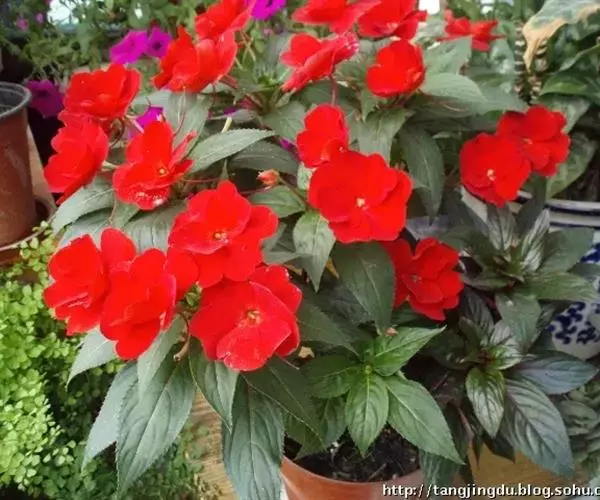 新几内亚凤仙花, 原产非洲热带山地,是凤仙花科凤仙花属多年生常绿草本花卉,适合盆栽、花坛或…