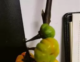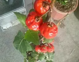 浆果红色或在栽培类型中也有橙色,果皮肉质,多汁液,形状及大小由于经长期人工培育或植株年龄、生境的不同而多变,广椭圆状、矩圆状、卵状或近球状,顶端有短尖头或平截、有时稍凹陷,长8-20毫米,直径5-10毫米。种子常20余粒,略成肾脏形,扁压,棕黄色,长约2毫米。花果期较长,一般从5月到10月边开花边结果,采摘果实时成熟一批采摘一批。