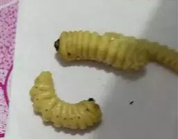斗米虫为锈色粒肩天牛的幼虫,锈色粒肩天牛主要危害槐树Sophora japonica,…