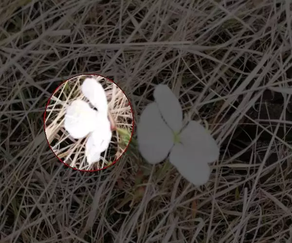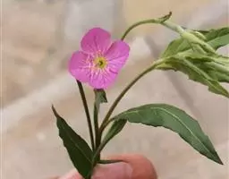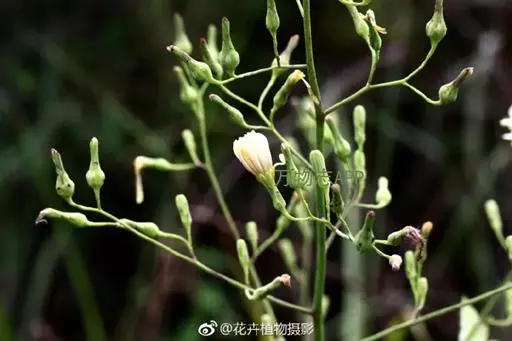 小花山桃草 一年生草本,主根径达2厘米,全株尤茎上部、花序、叶、苞片、萼片蜜被伸展灰白色长毛与腺毛;茎直立,不分枝,或在顶部花序之下少数分枝,高50-100厘米。基生叶宽倒披针形,先端锐尖,基部渐狭下延至柄。茎生叶狭椭圆形、长圆状卵形,有时菱状卵形,先端渐尖或锐尖,基部楔形下延至柄。花序穗状,有时有少数分枝,生茎枝顶端,常下垂;苞片线形。花傍晚开放;花管带红色;萼片绿色,线状披针形,花期反折;花瓣白色,以后变红色,倒卵形,先端钝,基部具爪;花丝基部具鳞片状附属物,花药黄色,长圆形,花粉在开花时或开花前直接授粉在柱头上(自花受精);花柱部分伸出花管;柱头围以花药,具深4裂。蒴果坚果状,纺锤形,具不明显4棱。种子4枚,或3枚(其中1室的胚珠不发育),卵状,红棕色。花期7-8月,果期8-9月。