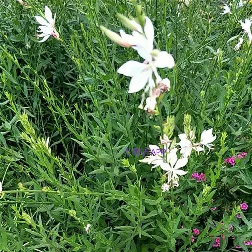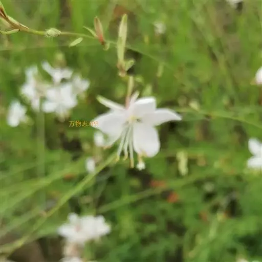 山桃草又名白蝶草、宿根草、千鸟花、白蝶花、玉蝶花、白桃花。