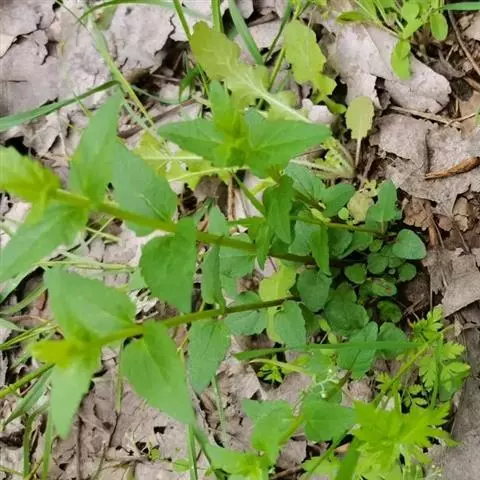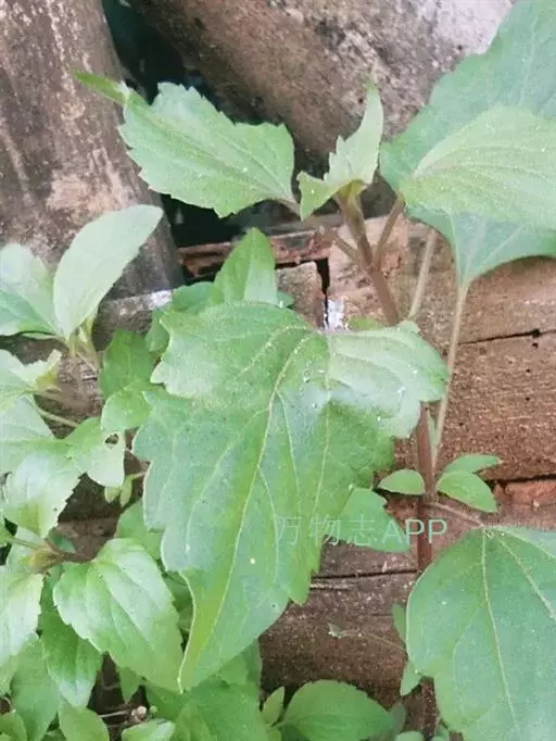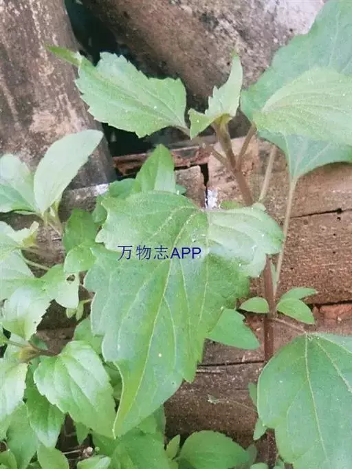 多年生草本,高30一90厘米。茎直立,分枝对生、斜上,茎上部的花序分枝伞房状;全部茎枝被白色或锈色短柔毛,上部及花序梗上的毛较密,中下部花期脱毛或无毛。叶对生,质地薄,卵形、三角状卵形或菱状卵形,长3.5—7?厘米,宽1.5—3厘米,有长叶柄,柄长4—5厘米,上面绿色,下面色淡,两面被稀疏的短柔毛,下面及沿脉的毛稍密,基部平截或稍心形,顶端急尖,基出三脉,侧脉纤细,边缘有粗大圆锯齿;接花序下部的叶波状浅齿或近全缘。头状花序多数在茎枝顶端排成伞房花序或复伞房花序,花序径2—4厘米或可达1.2厘米。总苞宽钟状,长3毫米,宽4毫米,含40—50个小花;总苞片l层或2层,线形或线状披针形,长3毫米,顶端渐尖。花托高起,圆锥状。管状花两性,淡紫色,花冠长3.5毫米。瘦果黑褐色,长1.5毫米,长椭圆形,5棱,无毛无腺点。冠毛白色,纤细,与花冠等长。花果期4—10月。