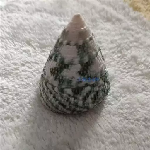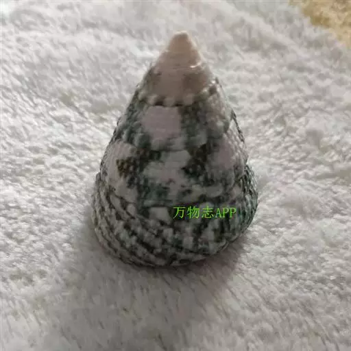 钟螺中体形最大、最重的一种,外形几乎呈等边三角形。大多数成贝的螺层除一些细斜纹外,大致光滑;中贝及所有幼贝螺层,都有管状小结节,有的在浅缝合线处形成凹槽。螺轴上有脊状齿。壳表浅粉红白色,有深红色宽斜条纹。(注:曾是制造纽扣的材料,现今仍有少量用来制作装饰品。)