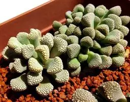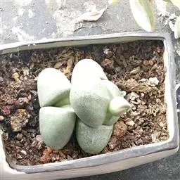 五十铃玉是番杏科窗玉属的多年生肉质植物,别名有“棒叶花”“婴儿脚趾”。植株高5厘米,叶片淡绿色,肉质,…