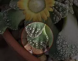 生石花,番杏科生石花属多年生肉质草本植物。植株几乎无茎;花朵较大,颜色艳丽,呈多边形,…