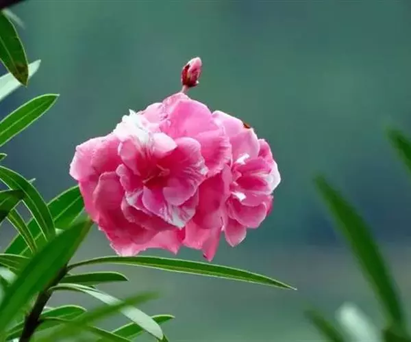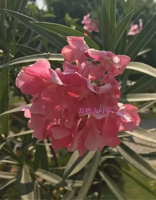 夹竹桃的叶片如柳似竹,红花灼灼,胜似桃花,花冠粉红至深红或白色,有特殊香气,花期为6-10月,是有名的观赏花卉。