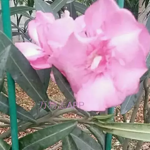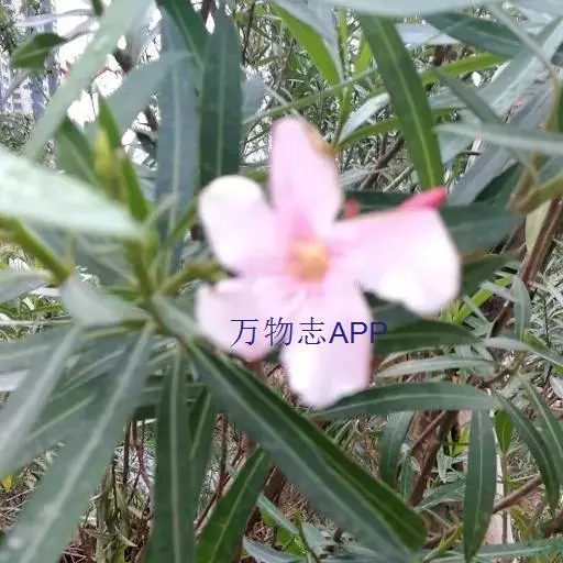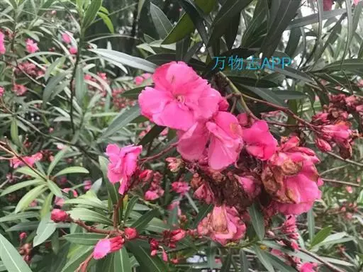 夹竹桃(学名:Nerium oleander L.)夹竹桃族夹竹桃属常绿直立大灌木,高可达5米,枝条灰绿色,嫩枝条具棱,被微毛,老时毛脱落。叶3-4枚轮生,叶面深绿,叶背浅绿色,中脉在叶面陷入,叶柄扁平,聚伞花序顶生,花冠深红色或粉红色,花冠为单瓣呈5裂时,其花冠为漏斗状,种子长圆形,花期几乎全年,夏秋为最盛;果期一般在冬春季,栽培很少结果。