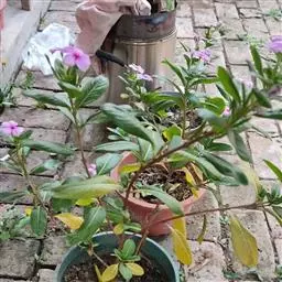 疏根方法:用快铲子把周围的黄毛根切去;再用三尖钩,顺主根疏一疏。大约疏去一半或三分之一的黄毛根,再重新栽在盆内。疏根后,放在荫处浇透水,使盆土保持湿润。保荫14天左右,再移在阳光处。地栽夹竹桃,在9月中旬,也应在主杆周围切切黄毛根。切根后浇水,施稀薄的液体肥。