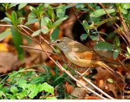 雌鸟比雄鸟小。与厚嘴苇莺的区别在眉纹色淡,体型较小而嘴细,头顶偏红,下体皮黄色较少。与日本树莺易混淆,不同处在于多棕色,下体两胁及尾下覆羽多为暗皮黄色。