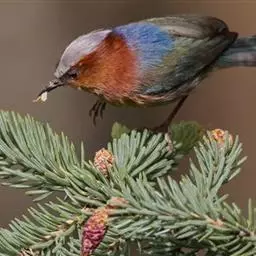 花彩雀莺:体长9-12厘米,是一种毛茸茸偏紫色的雀莺。顶冠棕色,眉纹白。尾长,羽毛松软。…