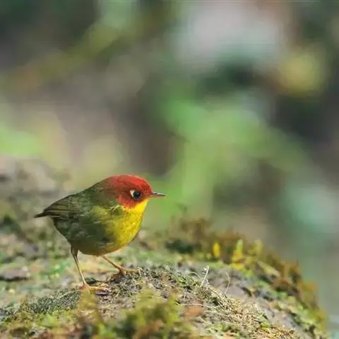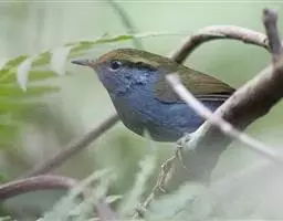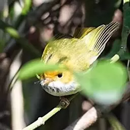 棕脸鹟莺:体长10厘米,是一种色彩亮丽而有特色的莺鸟。头栗色,具黑色侧冠纹。上体绿,腰黄色。下体白,…