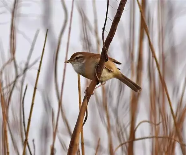 体大(17厘米)的通体棕色树莺。皮黄色的眉纹显著,眼纹深褐,无翼斑或顶纹。