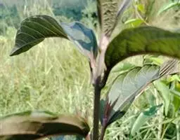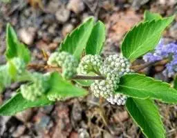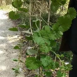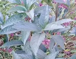 枝条细,叶小肾形,叶缘具白色斑块,冬季经霜变微红。