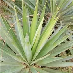 多年生肉质草本,茎短,具粗大根茎。叶从根部丛生,长约1-1.5米,圆筒形或稍扁,叶筒直径3厘米左右,上下粗细基本一样,叶端尖细而硬,叶面有纵向浅凹沟纹,叶面绿色。叶基部左右瓦相重叠,叶升位于同一平面,呈扇骨状伸展,形态特殊。总状花序,小花白色。