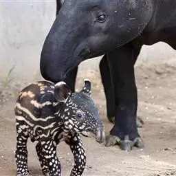 亚洲貘:亦称马来貘,是貘类中最大的一种,体长为1.8-2.5米,肩高90-120厘米,尾长5-10…