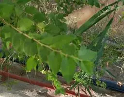 间苗:种子发芽后,幼苗长到10厘米左右时进行定苗,方法是按株距20厘米,留1株生长健壮苗,去除多余苗木。对缺苗断垄的地方,按株距20厘米移植多余苗,进行补植,每亩留苗5500株左右。定苗后应及时浇水。至苗木生长结束,当年苗高可达1-1.5米,地径0.8-1.2厘米。