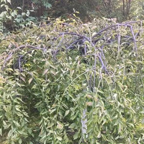 树皮暗灰色,粗糙,不规则纵裂。幼树枝条直立,且被白色毛;老树枝条先端下垂,有时木栓质发达成为瘤状。…