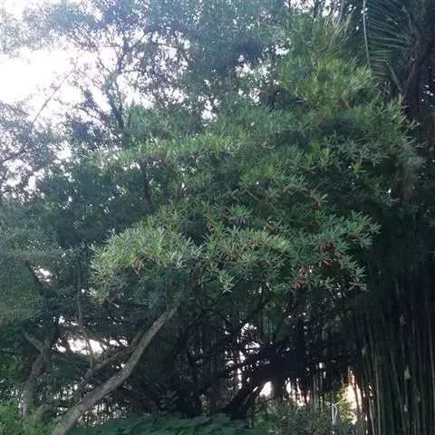 海南杜英,属杜英科杜英属的常绿小乔木。树冠整齐成层,枝条无毛。叶子聚集在顶端生长,狭披针形或倒披针…