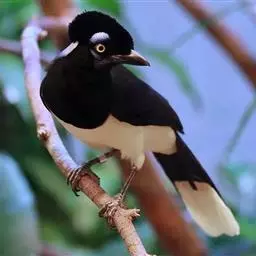 盘尾树鹊,是雀形目鸦科的珍稀鸟类,是一种中等体型的近黑色树鹊。尾甚长而端部展开;通体体羽闪亮深灰色,并具铜绿色光泽;嘴粗厚而呈钩状;眼先蓝色。虹膜蓝色;嘴黑色;脚黑色。单独或成对活动,栖于次生林、竹林、灌丛以至庭院。中国西南部、东南亚至爪哇。于中国罕见。仅在云南南部低地,尤其在红河流域有记录。