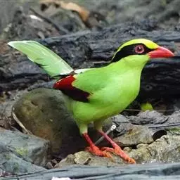 蓝绿鹊:中型鸟类,共有5个亚种。体长36-38厘米。尾长,嘴、脚红色。通体羽色主要为草绿色,…