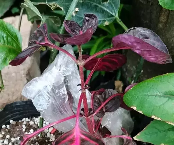 盆栽保持盆土湿润,生长期多喷水,血苋生长迅速,为控制植株高度和促进分枝,需进行2-3次摘心或修剪,保持矮壮而密集的株形。生长期每月施肥1次,多施磷、钾肥。