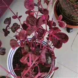 血苋全株紫红色,叶片绿色光亮,叶脉呈黄色或红色,叶色艳丽, 血苋 十分耐看。适宜盆栽、吊盆栽栽培和花坛、花径配置。