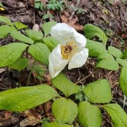 多年生草本。茎高50-70厘米,无毛。下部叶为二回三出复叶,上部叶3深裂或全裂;顶生小叶近3全裂或2裂,侧生小叶不裂或不等2裂,小叶或裂片狭长圆形至长圆状披针形,长9-13厘米,宽2-3厘米,顶端渐尖,基部楔形,下延,全缘,两面无毛,表面深绿色,背面淡绿色。花3-4朵,生茎顶和叶腋,全发育开放或仅顶端一朵开放,直径8-12厘米;苞片3,叶状,披针形,长2-3.5厘米,宽5-10毫米;萼片3,近圆形,直径约1.5厘米,顶端骤尖;花瓣白色,倒卵形,长约4.5厘米,宽2.4厘米;雄蕊长1.5-2厘米;心皮2,密生淡黄色糙伏毛。蓇葖2,卵圆形,长2-2.6厘米,直径1-1.5厘米,密生淡黄色糙伏毛;种子球形,黑色,无毛。
