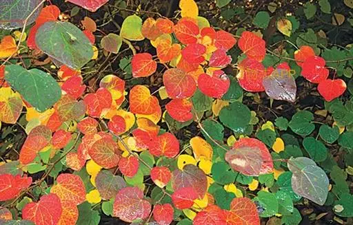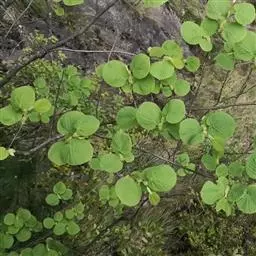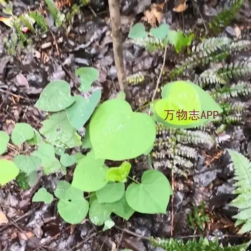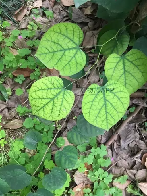 长柄双花木 多分枝灌木,小枝屈曲,褐色,无毛,有细小皮孔。叶膜质,叶片的宽度大于长度,阔卵圆形,长5-8厘米,宽6-9厘米,先端钝或为圆形,背部不具灰色,基部心形,上面绿色无光泽,下面带灰白色,无毛,掌状脉5-7条,在上下两面均明显,全缘;叶柄长3-5厘米,圆筒形,稍纤细,无毛;托叶线形,早落。