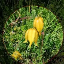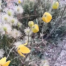 聚伞花序腋生,常1-3花,无毛,花序梗长2-7厘米,顶端生一对叶状苞片;苞片长椭圆状披针形,长5-9厘米,宽1-2.5厘米,边缘常全缘,稀有时分裂,具长约1厘米的细弱短柄;花梗长1-4厘米;花钟状,下垂、直径2-3.5厘米,萼片4枚,淡黄色,卵圆形或卵状椭圆形,长2.5-3厘米,宽1-1.2厘米,顶端急尖,外面无毛,内面微被紧贴的短柔毛,边缘密被淡黄色绒毛;雄蕊比萼片短,长1.5-2厘米,花丝线形,基部无毛,上部的背面及两侧被稀疏开展的柔毛,花药及药隔密被短柔毛,药隔在顶端有尖头状突起;心皮被短柔毛,花柱细瘦被绢状毛。瘦果棕色,纺锤形或倒卵形,长5毫米,宽约2毫米,被短柔毛,宿存花柱长4-5厘米,丝状,被黄色长柔毛。花期8月至9月,果期9月至10月。