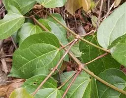 攀援草质藤本。茎圆柱形,淡黄色,有六条浅的纵沟纹,