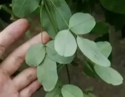 一年生直立草本,高20-60厘米。茎被褐色长硬毛。羽状复叶具3小叶;托叶盾状着生,卵形,长0.8-1.2厘米,具缘毛;小托叶显著,披针形;小叶卵形,长5-16厘米,宽3-12厘米,侧生的多少偏斜,全缘,先端渐尖,基部阔楔形或浑圆,两面多少被疏长毛,基部三脉明显;叶柄长5-21厘米;叶轴长1.5-4厘米;小叶柄长3-6毫米。总状花序腋生,有花4至数朵,最多可达25朵;总花梗长2.5-9.5厘米;花梗长2-3毫米;小苞片线状披针形或长圆形,长4-7毫米,有线条,近宿存;萼管无毛,长3-4毫米,裂片狭三角形,长1.5-4毫米,具缘毛,上方的一对合生成一先端2裂的裂片;旗瓣近方形,长1.2厘米,宽1.6厘米,外面黄绿色,里面有时粉红,顶端微凹,内弯,无毛;翼瓣卵形,黄色;龙骨瓣镰刀状,绿色而染粉红,右侧有显著的囊。荚果线状圆柱形,平展,长4-9厘米,宽5-6毫米,被淡褐色、散生的长硬毛,种子间多少收缩;种子8-14颗,淡绿色或黄褐色,短圆柱形,长2.5-4毫米,宽2.5-3毫米,种脐白色而不凹陷。花期初夏,果期6-8月。