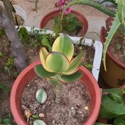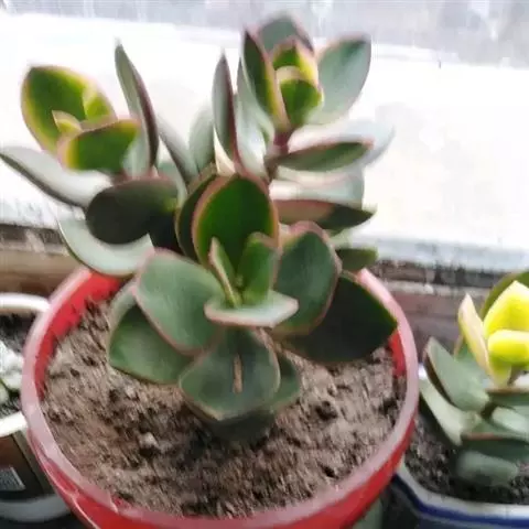 三色花月锦(学名:Crassula argentea Tricolor Jade)是景天科青锁龙属多肉植物,燕子掌的栽培品种,叶片有红、黄、白斑块,色彩斑斓。花期秋季。
