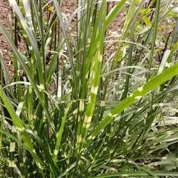 斑叶芒是禾本科、芒属多年生草本植物。丛生状,茎高可达1.7米。叶片有黄色不规则斑纹,…