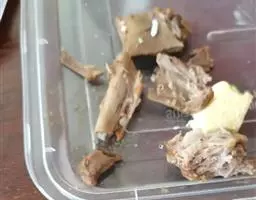2 生姜(切片),桂皮,八角,辣椒,大蒜头(整个)放油(多些)炸出香味。