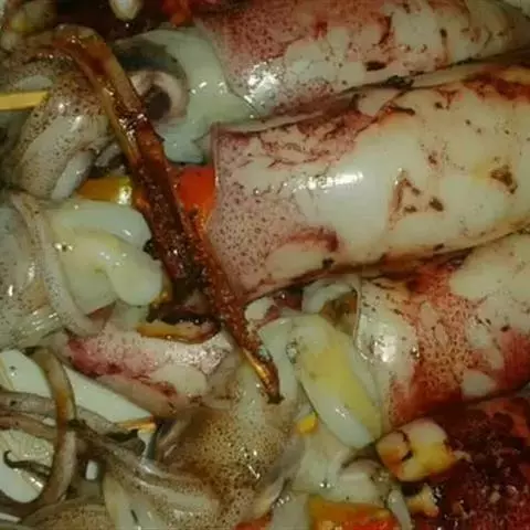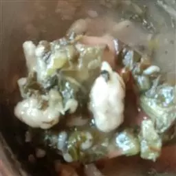 5.就像吃火锅一样 ,再跟据各人爱好放些青菜、粉丝、蘑菇之类的下锅煮着吃,味道鲜嫩无比啊!