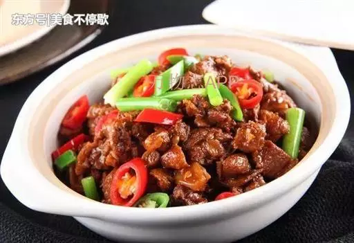 调好味道之后就改成小火,焖30分钟,再加入甜豆、辣椒丝,撒上点胡椒粉,稍微勾芡,出镬,盛盘上桌。