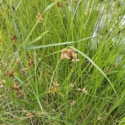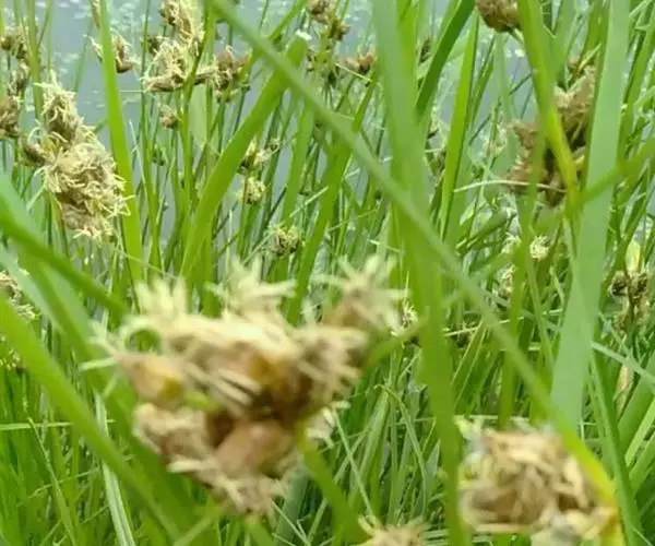 扁秆荆三棱(学名:Bolboschoenus planicalmis (F. Schmidt) Egorova)是莎草科,三棱草属具匍匐根状茎和块茎。秆高可达100厘米,三棱形,叶平张,具长鞘。苞片叶状,通常长于花序,边缘粗糙;花药线形,药隔稍突出;小坚果倒卵形,扁,5-9月开花结果。