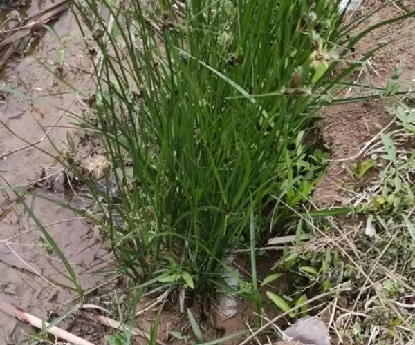 具匍匐根状茎和块茎。秆高60—100厘米,一般较细,三棱形,平滑,靠近花序部分粗糙,基部膨大,具秆生叶。叶平张,宽2—5毫米,向先端渐狭,具长鞘。苞片1—3枚,叶状,通常长于花序,边缘粗糙;长侧枝聚伞花序短缩成头状,或有时具少数辐射枝,通常具1—6个小穗;小穗卵形或长圆状卵形,锈褐色,外面被稀少的柔毛,背面具1条稍宽的中肋,先端或多或少缺刻状撕裂,具芒;下位刚毛4—6条,上生小刺,长为小坚果的1/2—2/3;雄蕊3,花药线形,长约3毫米,药隔稍突出;花柱长,柱头2。小坚果倒卵形,扁,两面稍凹或稍凸,长3—3.5毫米。花果期5—9月。
