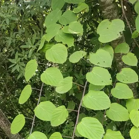 嫩枝无毛。叶膜质,卵形或倒卵形,长3.5-5.5厘米,宽2-3厘米,先端短急尖,基部心形,下面秃净无毛,侧脉7对,边缘有小锯齿,齿突刺毛状,叶柄长6-8毫米,无毛。蒴果硬木质,长1.3厘米、宽1厘米,无毛。