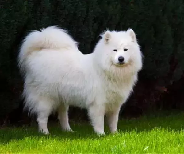 萨摩耶犬(英文:Samoyed),别称萨摩耶,原是西伯利亚的原住民萨摩耶族培育出的犬种,一岁前调皮、灵动。它机警、强壮、灵活、美丽、高贵优雅、乖巧可爱,有着非常引人注目的外表,有“微笑天使”的称号,也有着“微笑天使面孔,捣蛋魔鬼内心”之称。萨摩耶犬的颜色为白色;部分带有很浅的浅棕色、奶酪色、浅棕色。此外其他颜色都属于失格。世界上曾出现过一只灰白色萨摩,FCI承认他是具有纯种血统萨摩耶基因的返祖萨摩,黑色萨摩耶犬极为罕见。